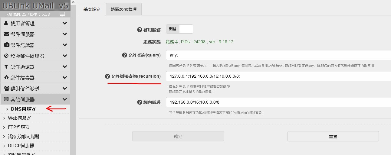 僅允許列表 IP 來源可以進行遞迴查詢動作