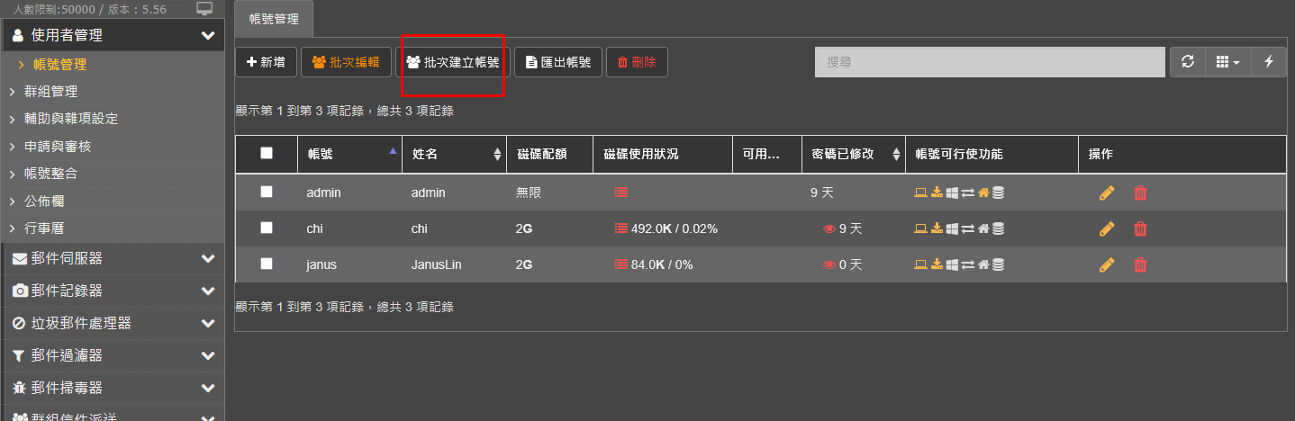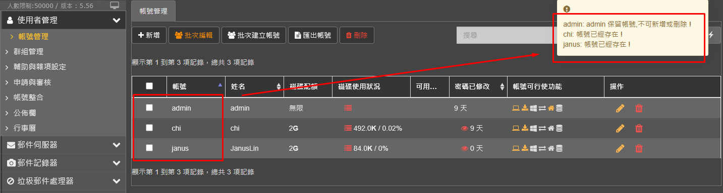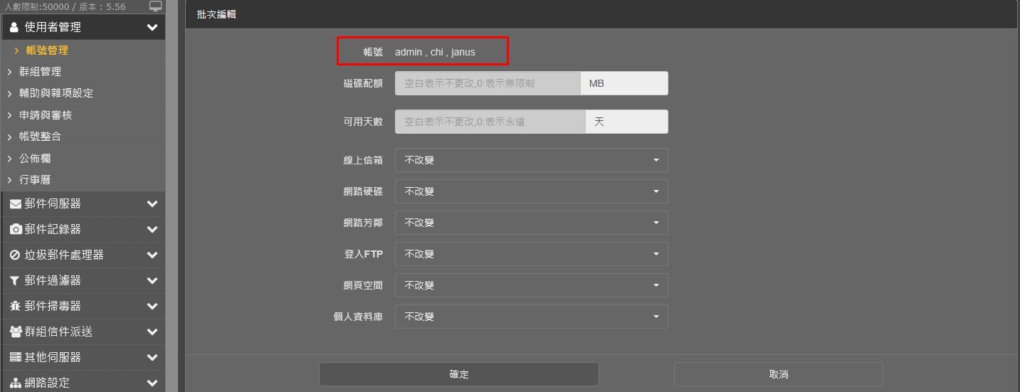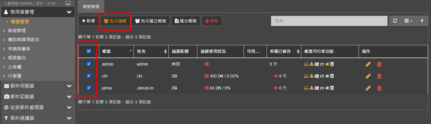 一次可以選擇多個帳號做修改
