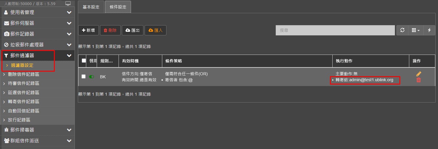 郵件過濾器 過濾器設定 轉寄給某人