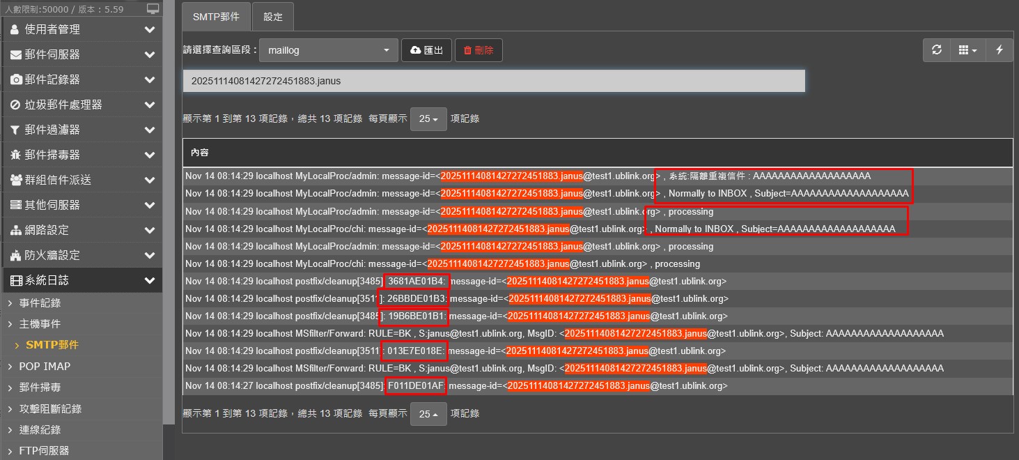 syslog log SMTP ID 中就會有紀錄該信件的完整流程