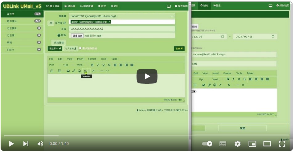 UMail v5 超大附件夾檔功能,utf8,回信也一樣,如果對方是big5,建議新增一封utf8的新信件,否則夾檔會消失