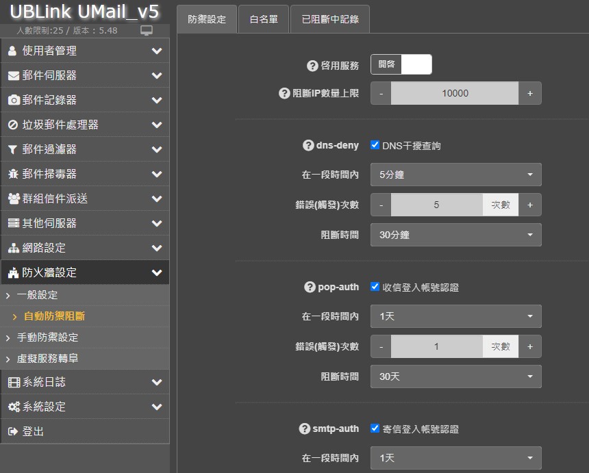 UMail V5郵件伺服器 如何降低郵件帳號被盜用的風險 ? fail2ban