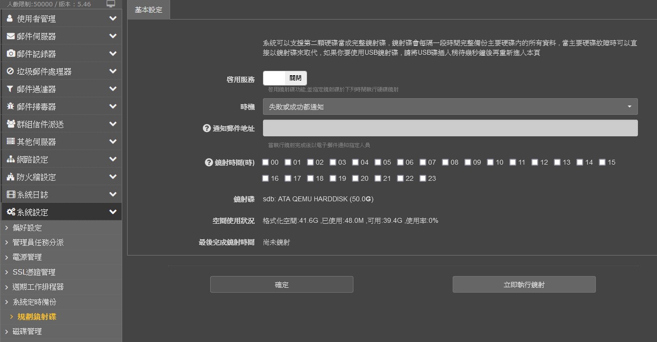 UMail v5 備援方式-本機安裝第二個硬碟鏡射 Mirror,擴大硬碟空間