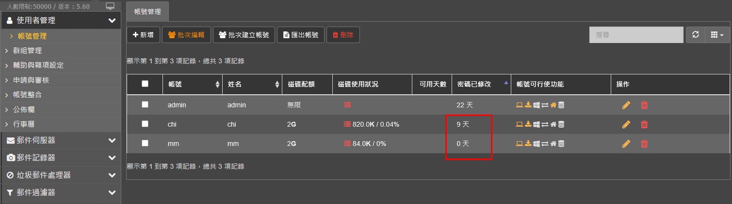 帳號管理 密碼已修改 天數