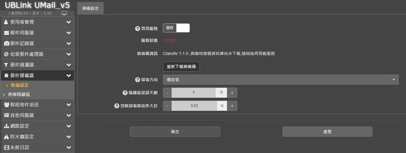 UMail v5 新裝機 郵件掃毒器 未啟動