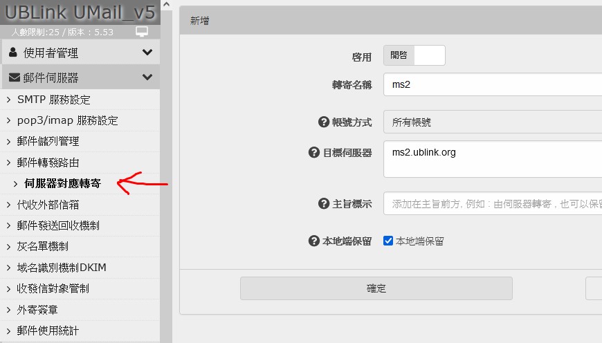 UMail v5 郵件伺服器 郵件轉發路由 伺服器對應轉寄
