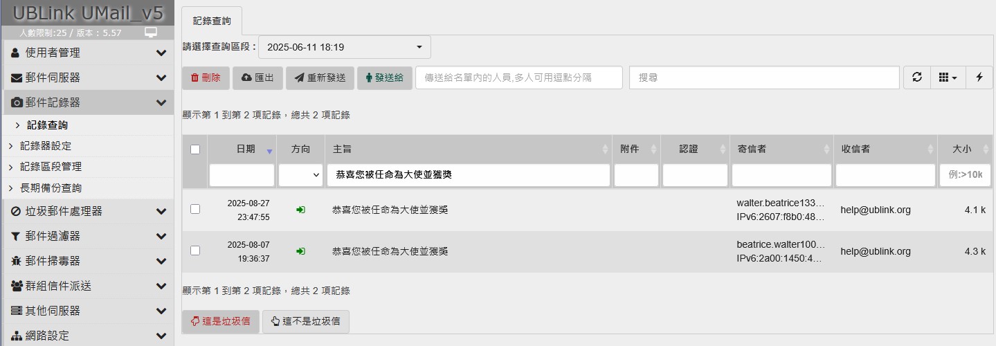 Aug 28 08:23:31 mail 郵件記錄器/記錄查詢: admin:[59.125.9.159] 開啟並閱讀信件 寄信者: