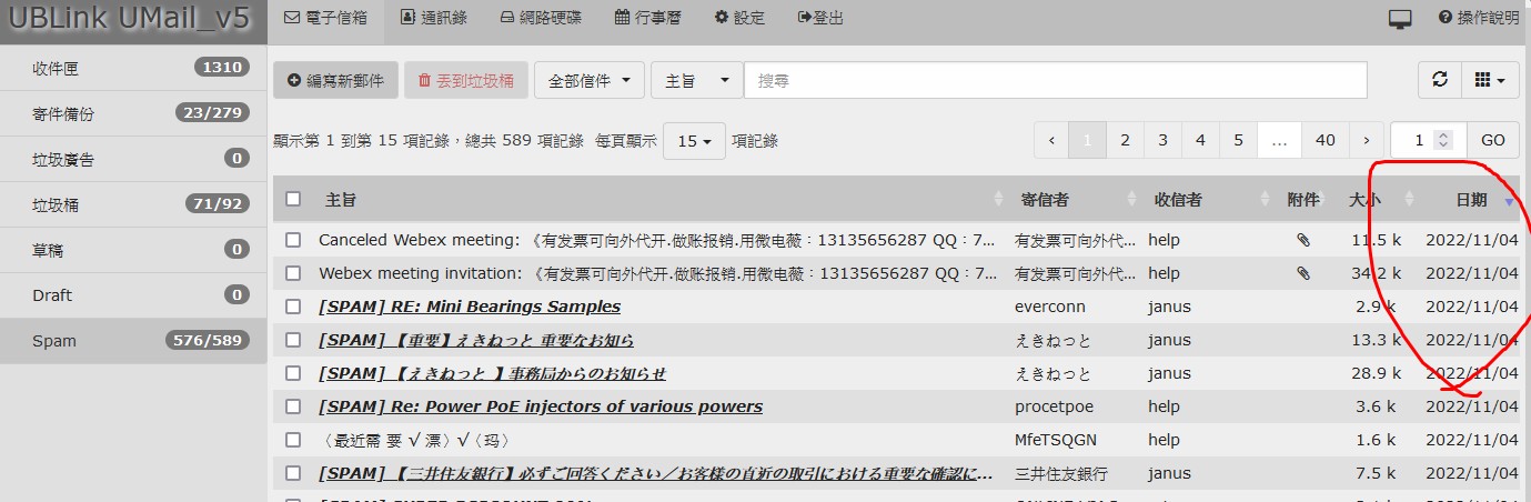 UMail v5 webmail spam 資料夾
