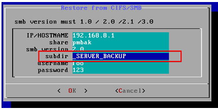 •    注意1 : 還原時設定的子目錄請輸入 _SERVER_BACKUP