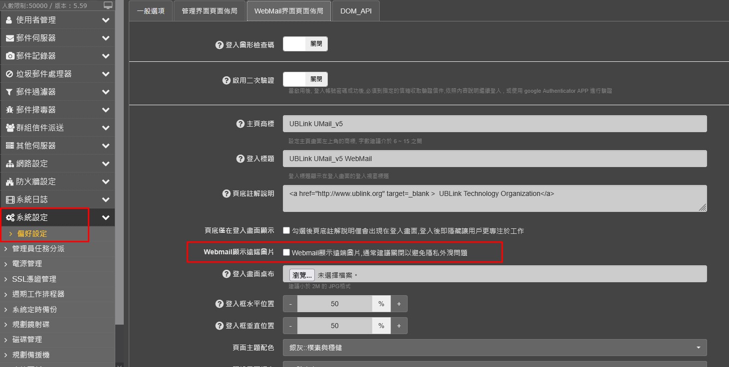 系統設定/偏好設定/webmail介面布局 , 增加可以調整 Webmail顯示遠端圖片, 如果需要社交工程測驗時可以暫時開啟 , 以符合測試單位的要求
