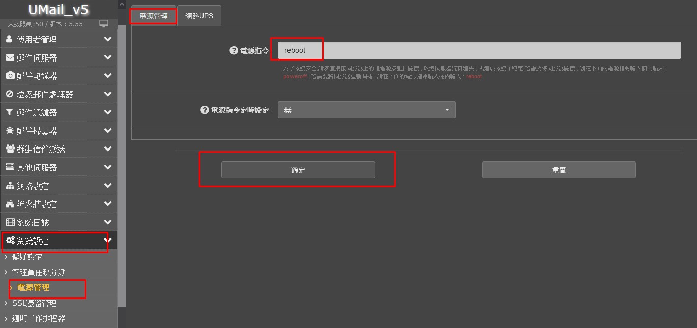 UMail 重開機,點立即重新開機
