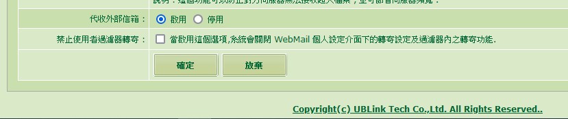 允許用戶在WebMail介面 設定/自動轉寄或進階過濾器內進行信件自動轉寄
