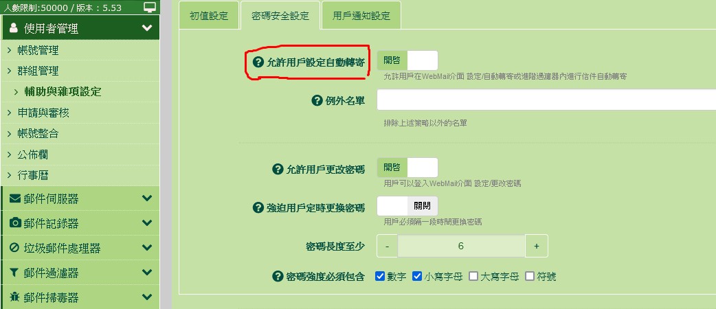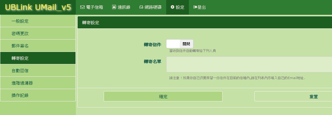 允許用戶設定自動轉寄