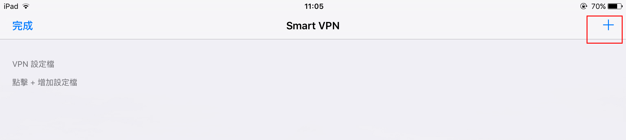 8. 登入iOS裝置執行SmartVPN後,點選 + 符號,新增設定檔
