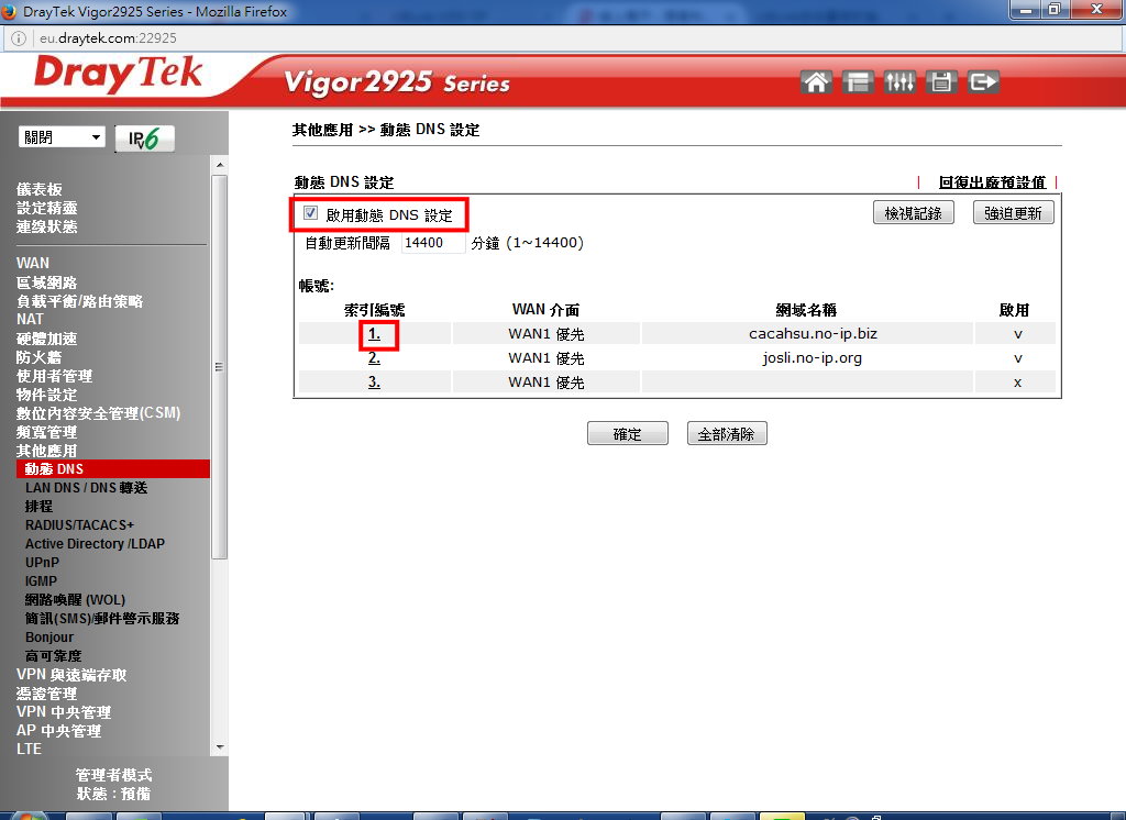 -------------------------------申請DDNS的動作,如果你是真實IP,可以跳過這一段,到開始VPN的設定