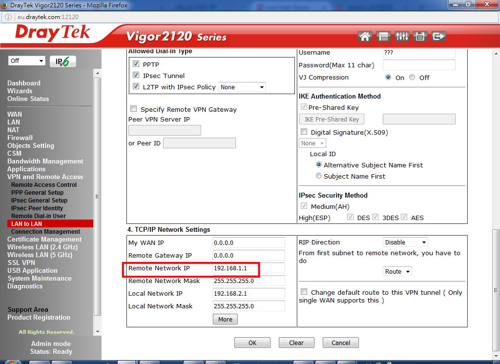 Remote Network IP 填入遠端的 IP 192.168.1.1
