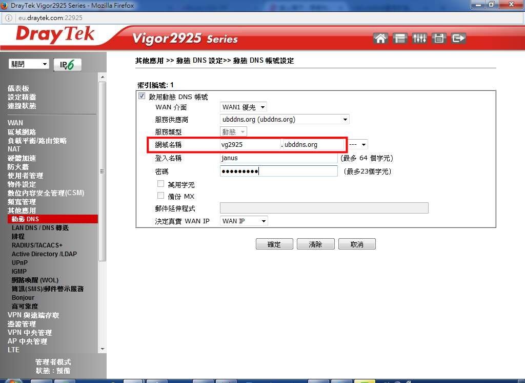 申請一個 vg2925.ubddns.org 的Domain FQDN