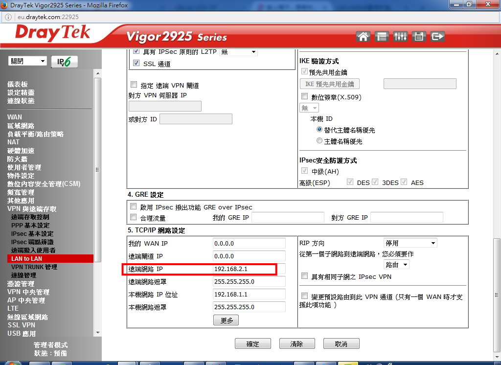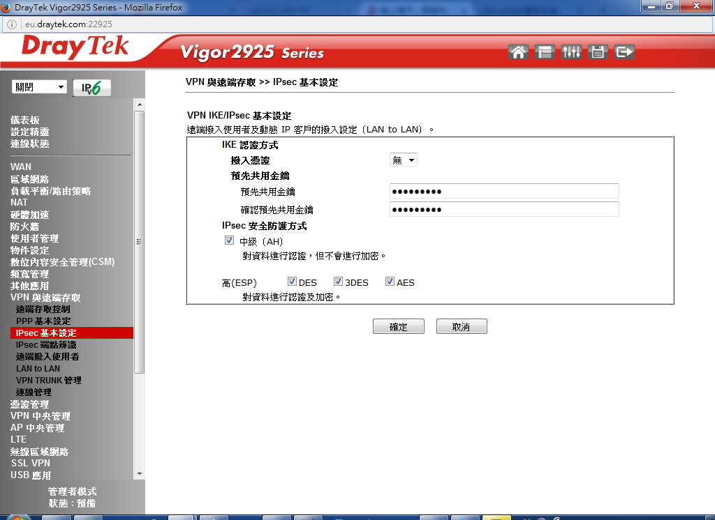 VPN 與遠端存取 >> IPsec基本設定 >> VPN 與遠端存取 >> IPsec基本設定