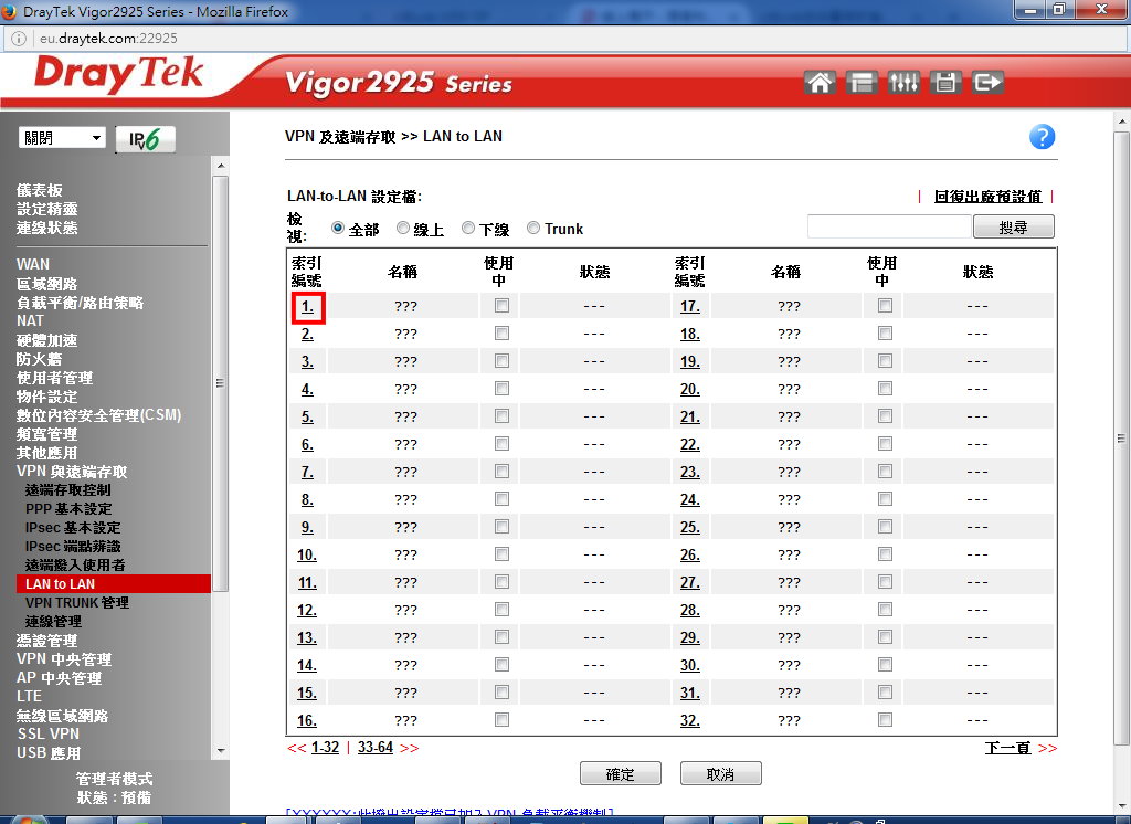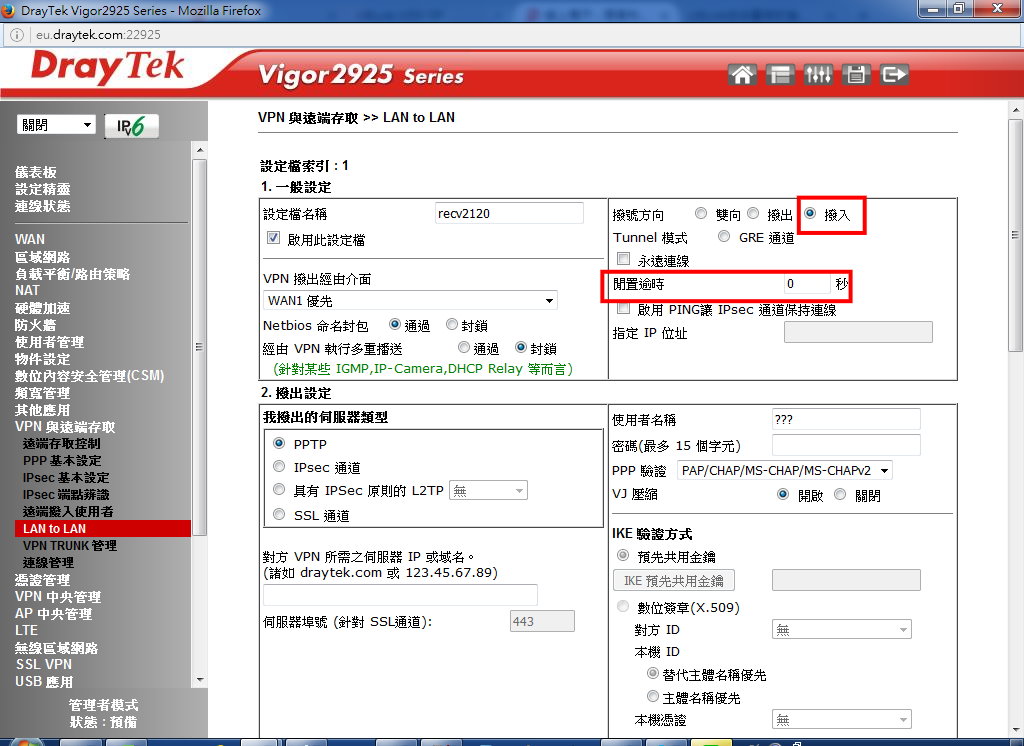 Vigor2925 這一端為撥入端 Dial in (繁體中文韌體版本)