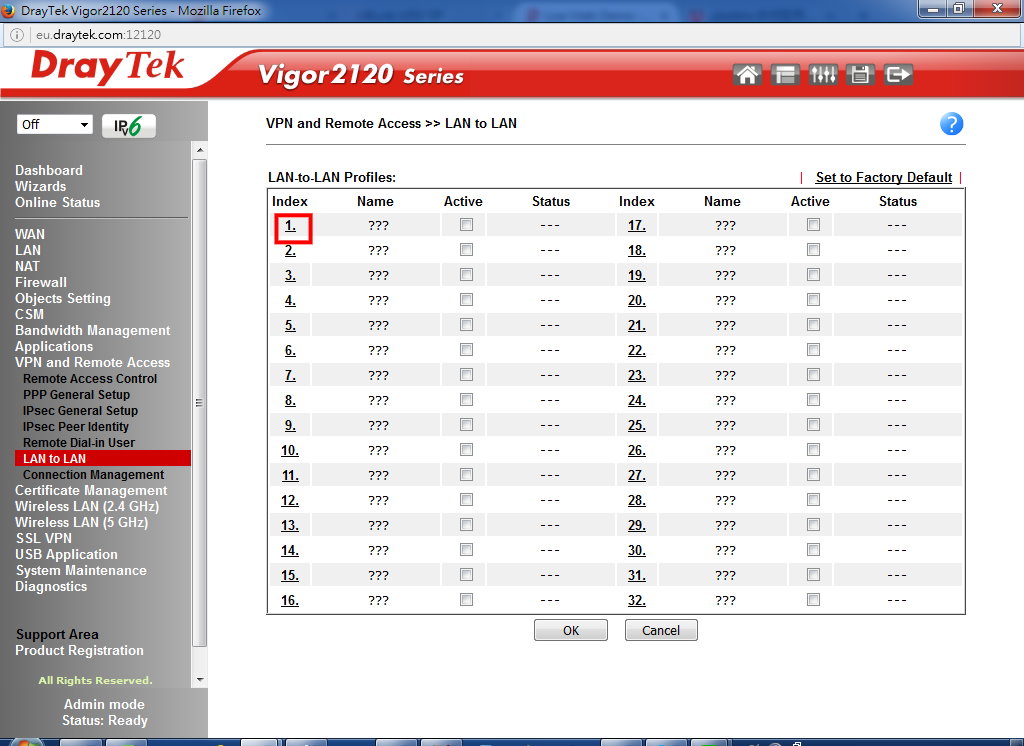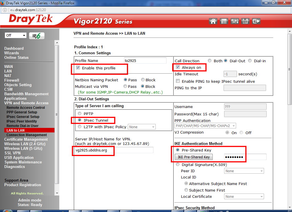 Vigor2120 這一端為撥出端 Dial Out (英文韌體版本)