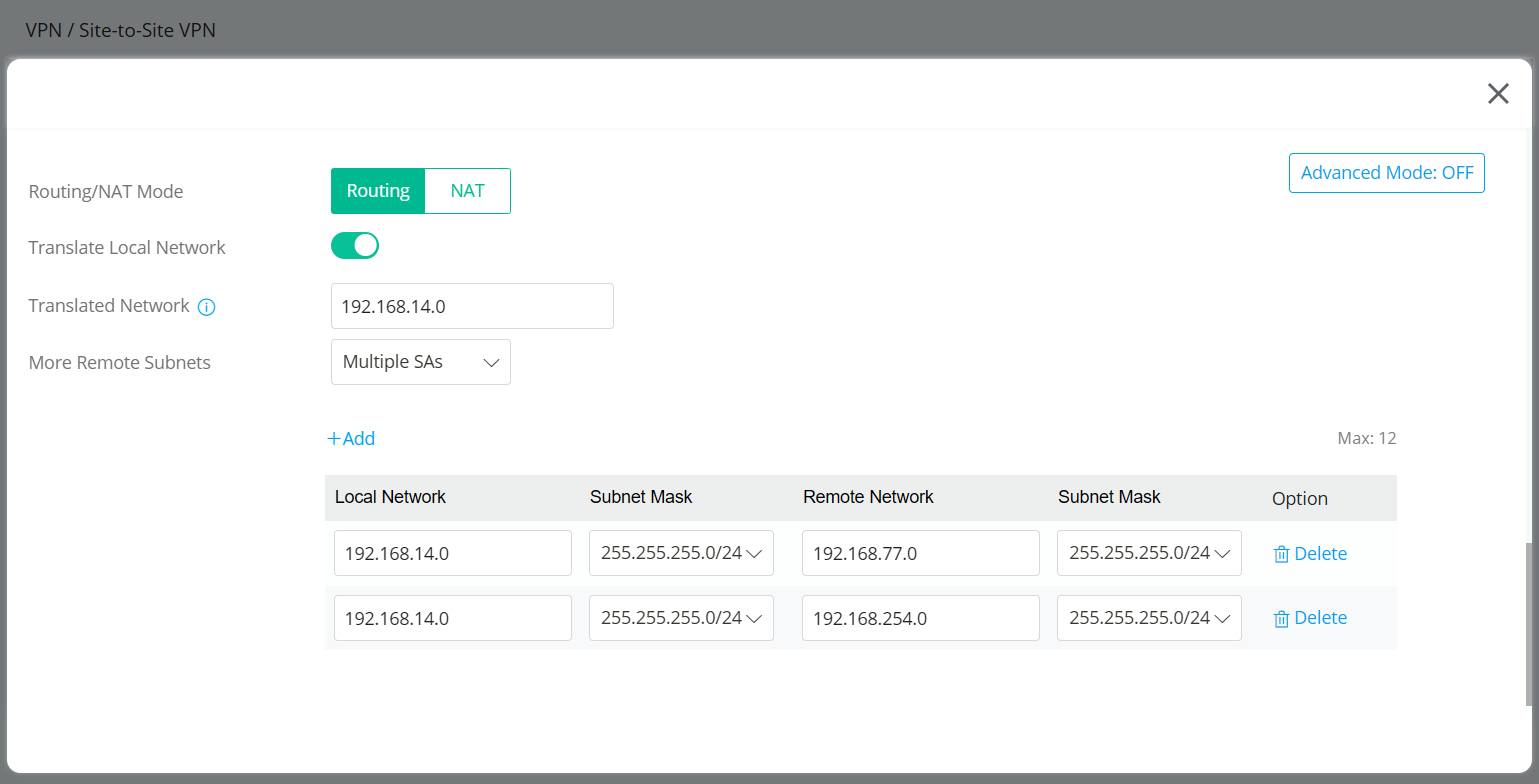 More Remote Subnets Multipls SAs