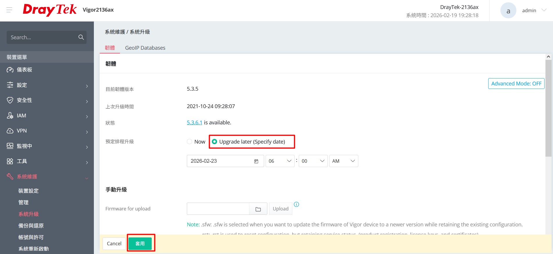 Upgrade later (Specify date) <<< 可以自排時間,機器自己更新