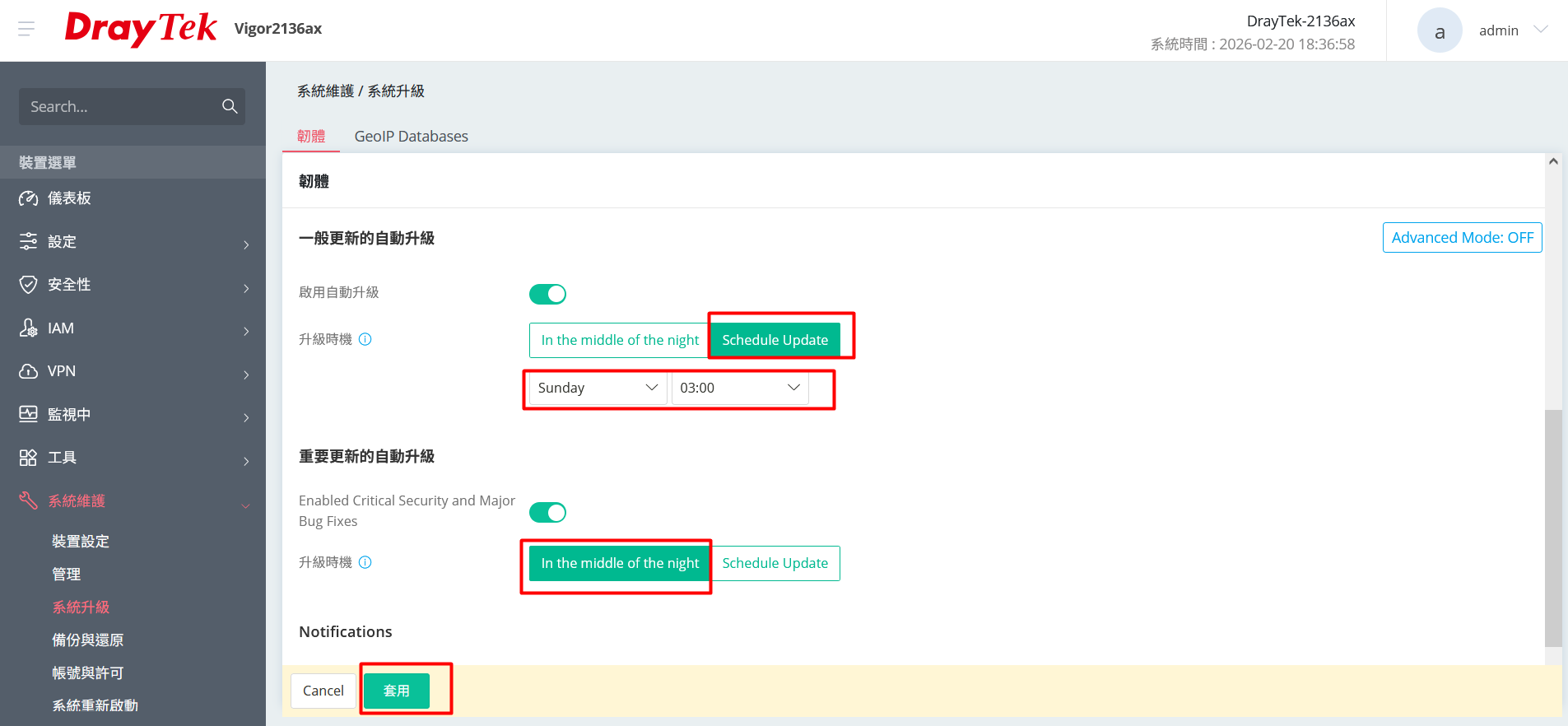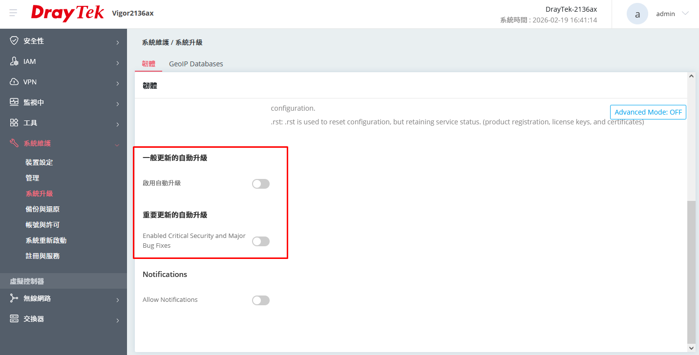 重要更新的自動升級