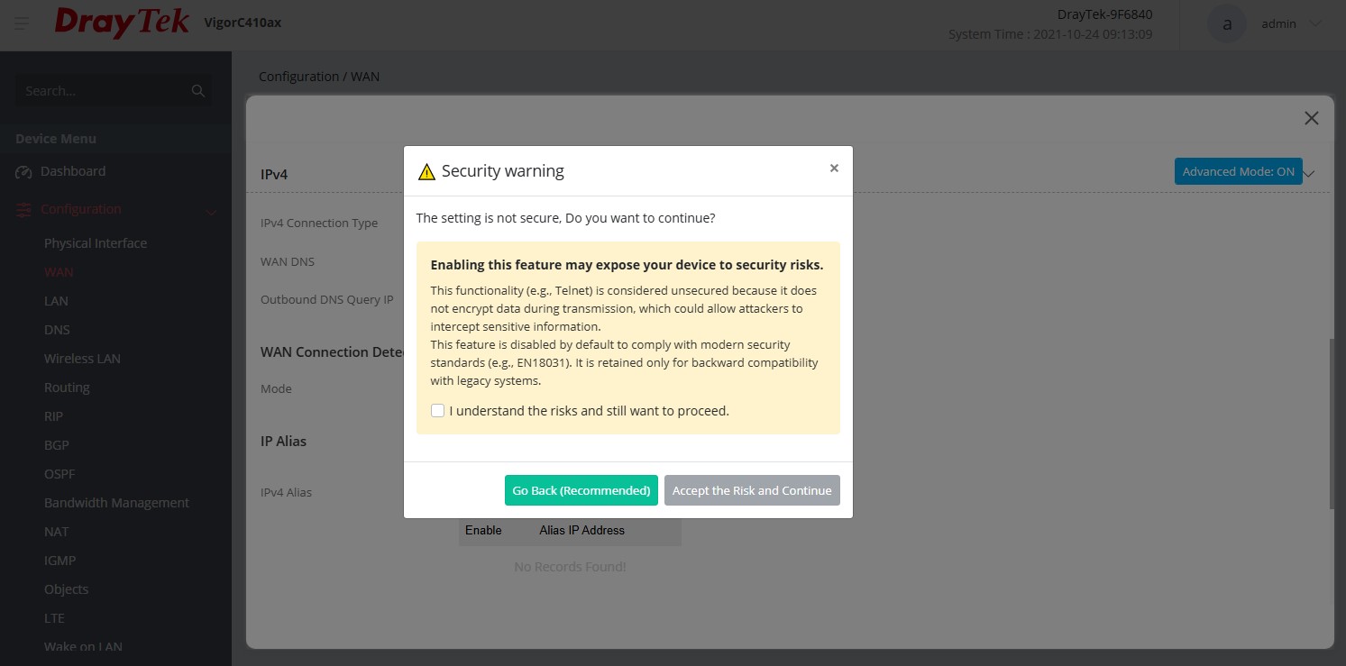 This feature is disabled by default to comply with modern security standards (e.g., EN18031). It is retained only for backward compatibility with legacy systems.
