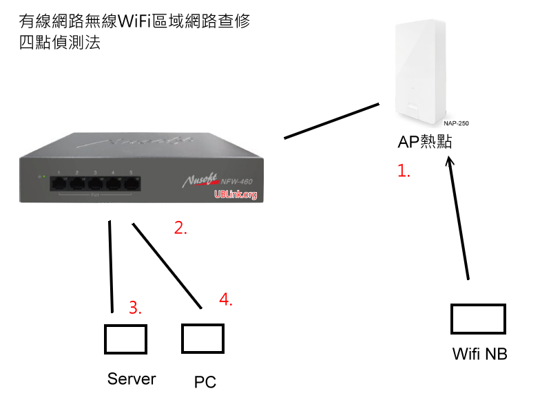 WiFi 的 Notebook 或是 PC 同時間 ping -t 4個點