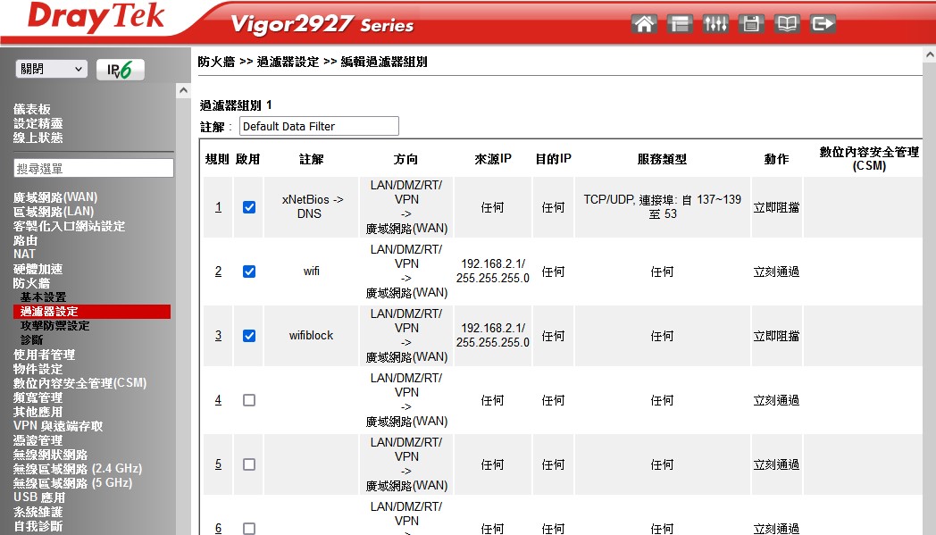 此條過濾器後面在接上一條無線網路區段全部拒絕