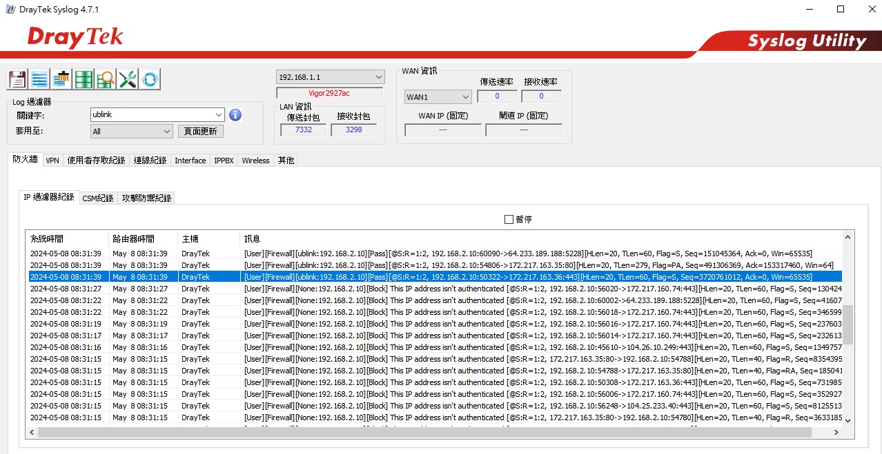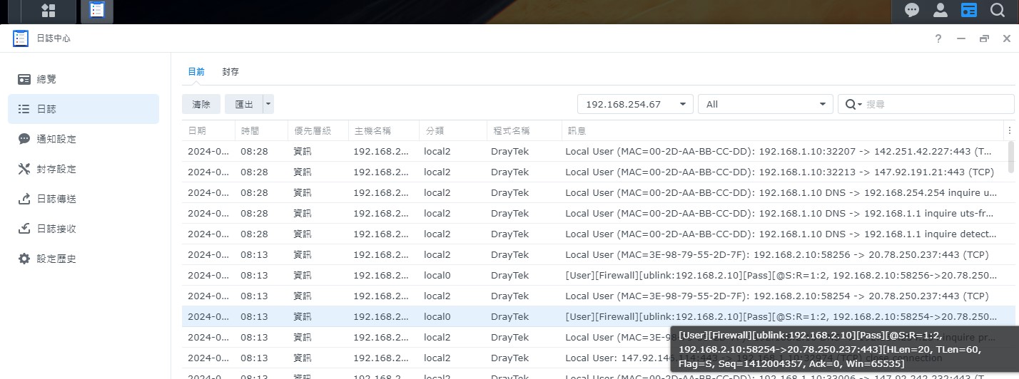 Synology NAS日誌中心 群輝NAS 看到的 syslog Vigor Router Firewall
