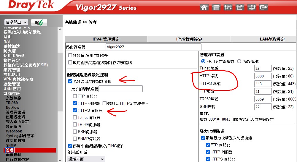 Vigor 如何開啟遠端管理 http https telnet ssh