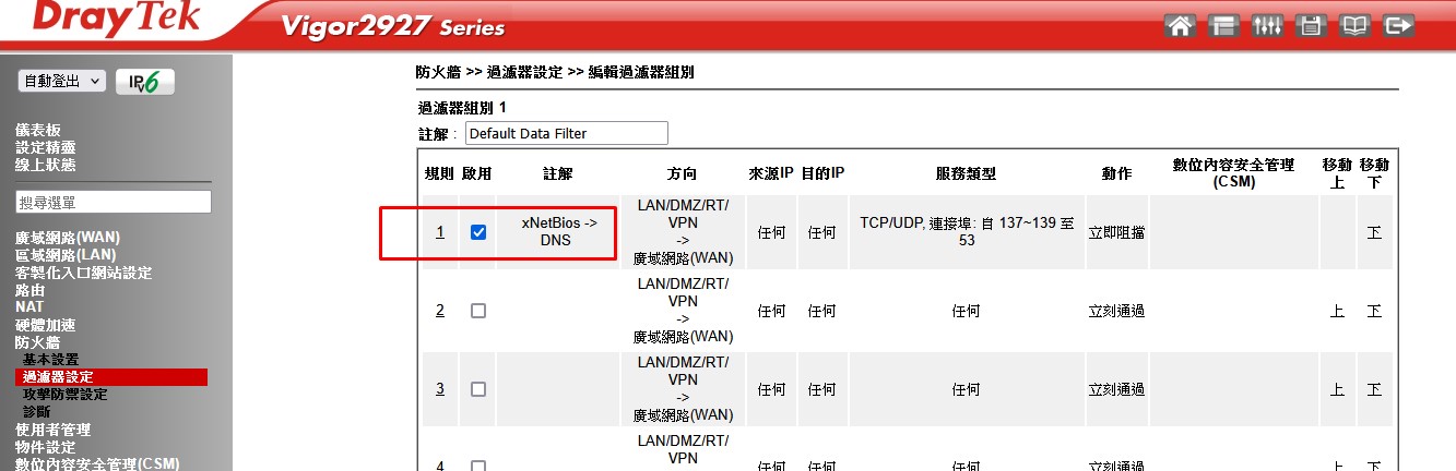 防火牆 >> 過濾器設定