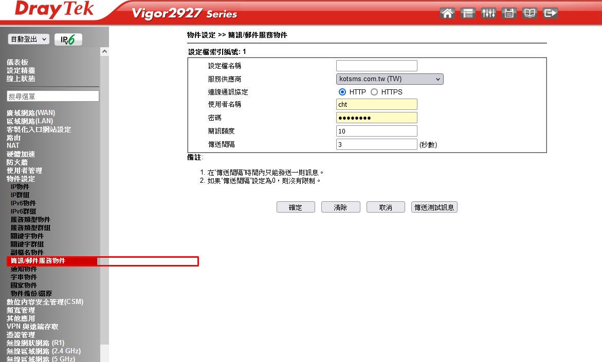 也可以透過Vigor2927Lac直接發簡訊就好了