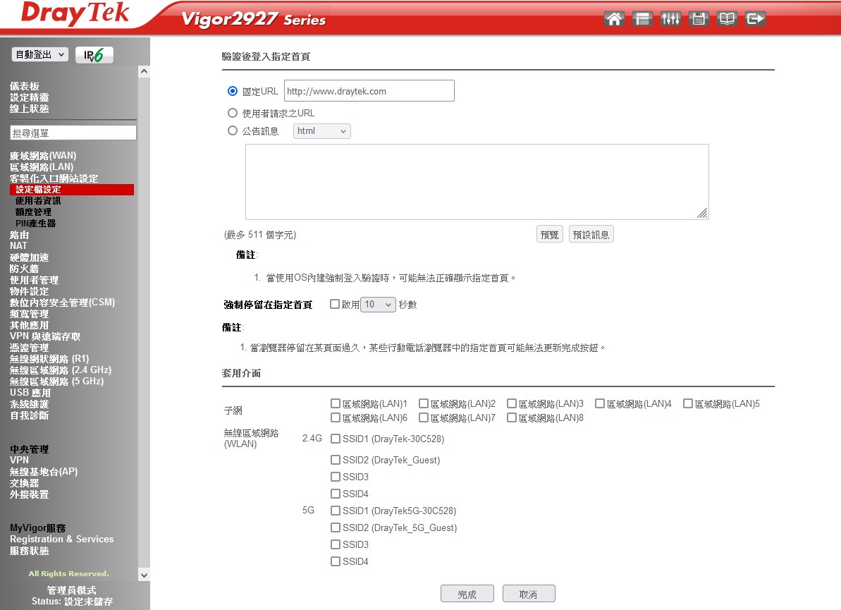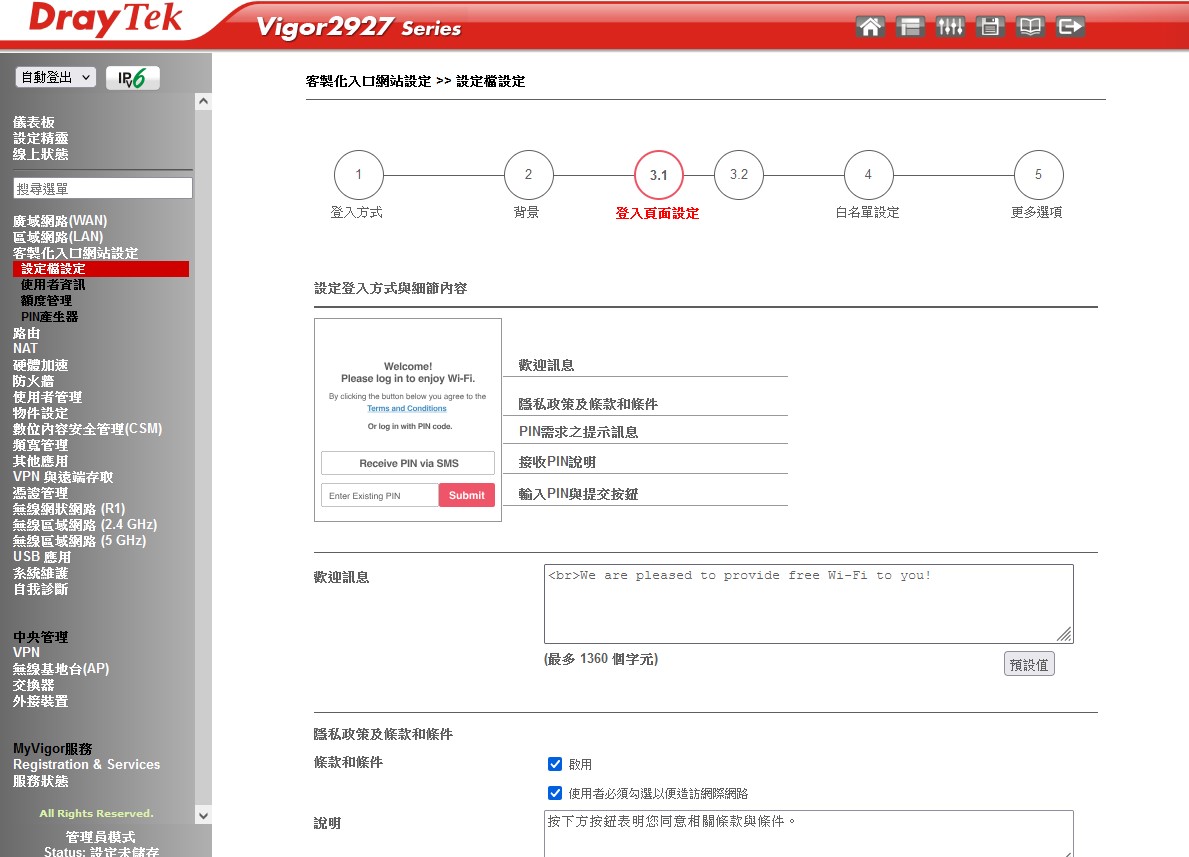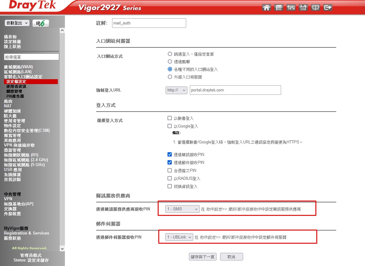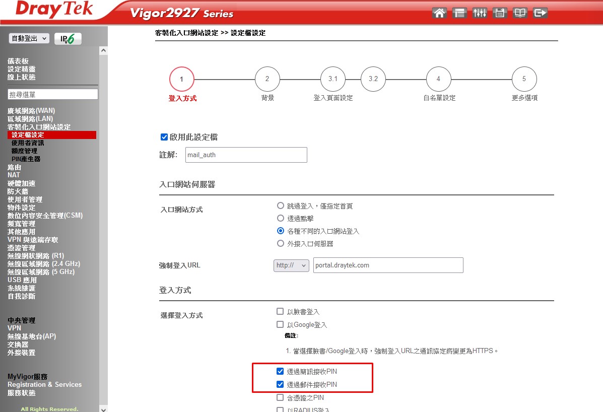 Vigor使用者上網驗證透過Mail或是SMS簡訊驗證後才可以上網