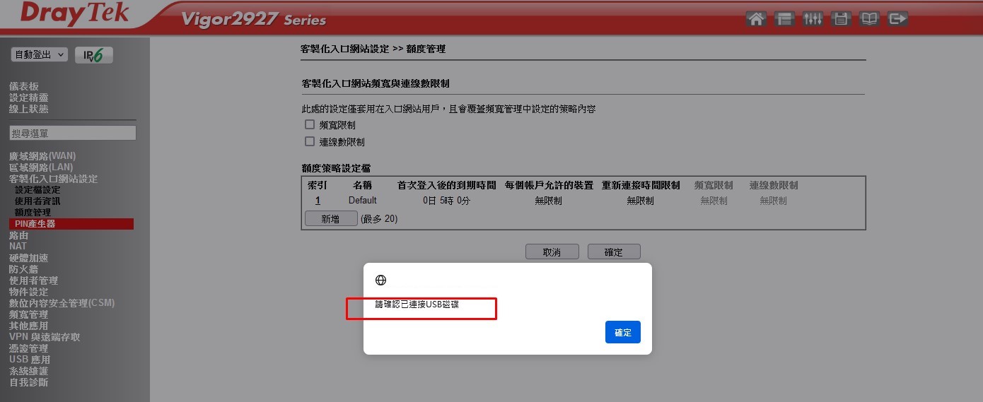 欲修改額度設定,請至客製化入口網站設定 >> 額度管理。