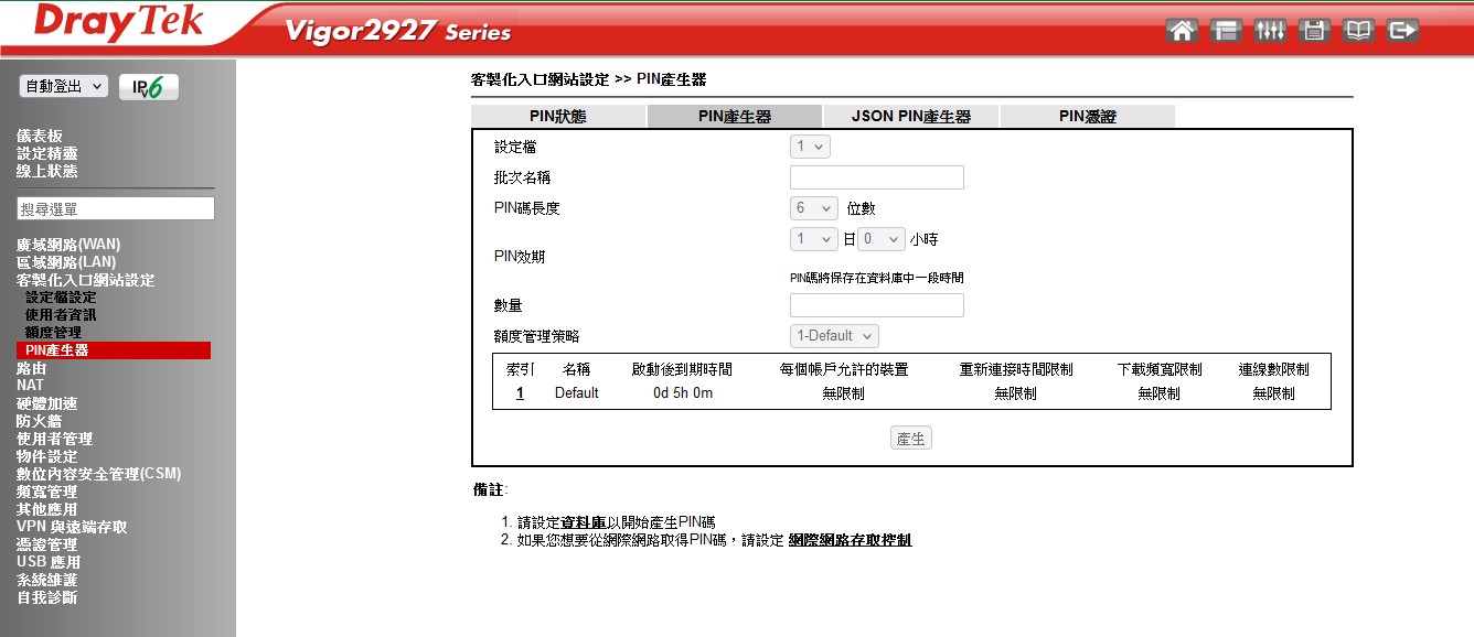 登入方式 額度策略設定檔 有效時間 允許的裝置 頻寬限制 連線數限制