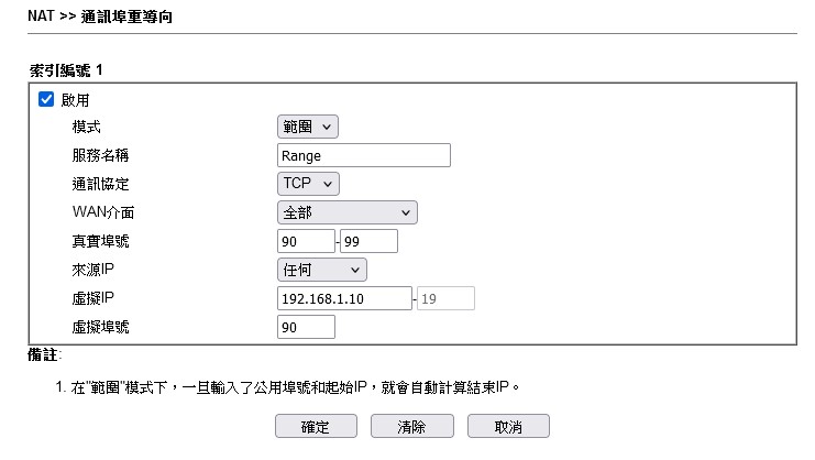 在"範圍"模式下,一旦輸入了公用埠號和起始IP,就會自動計算結束IP。