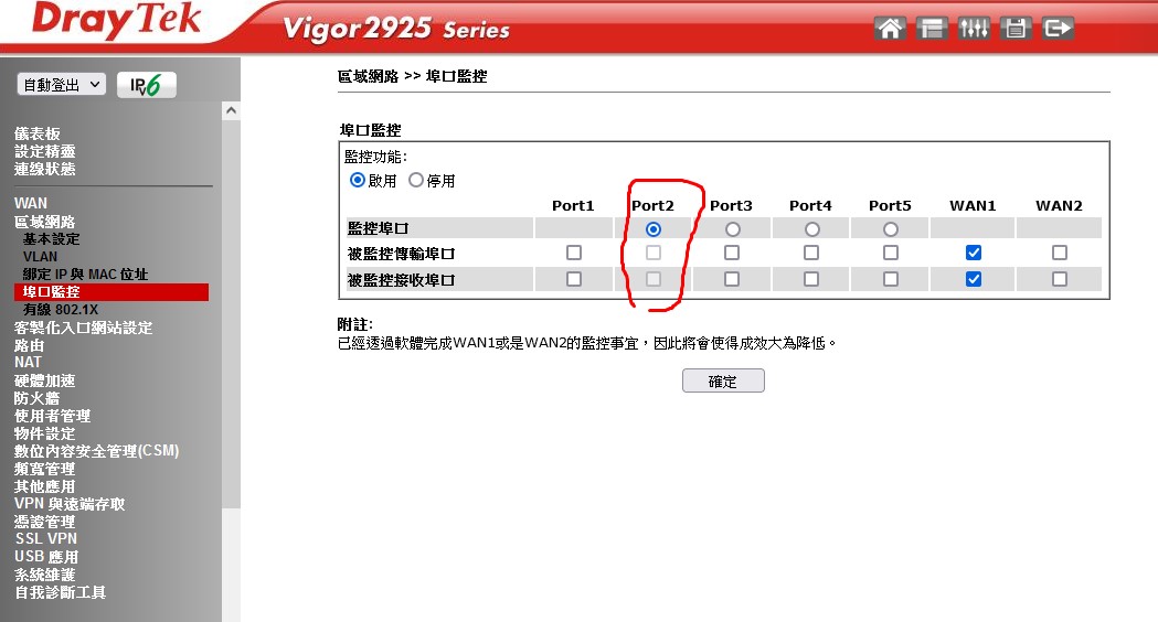 Vigor Route 區域網路 埠口監控 port mirror LAN 或 WAN
