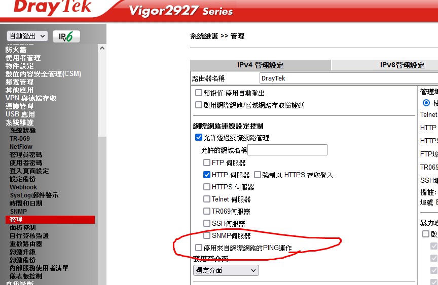啟用ICMP flood攻擊功能 門檻 封包 / 秒數