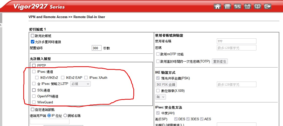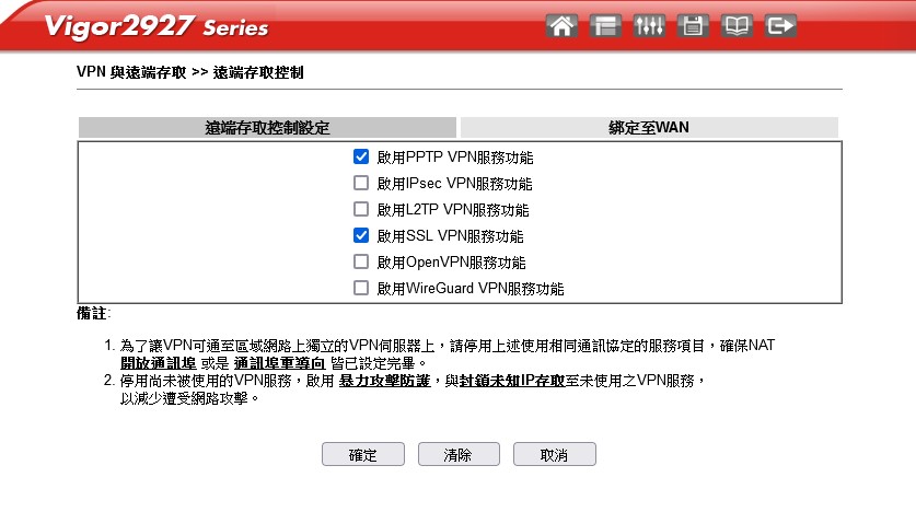 注意,相應VPN類型未啟用,請在"遠端存取控制"設定頁面啟用相應類型。