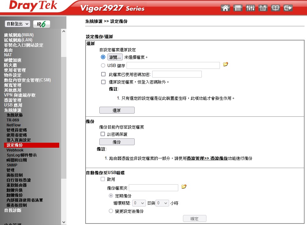 Vigor Router Firewall 自動備份設定檔至USB磁碟