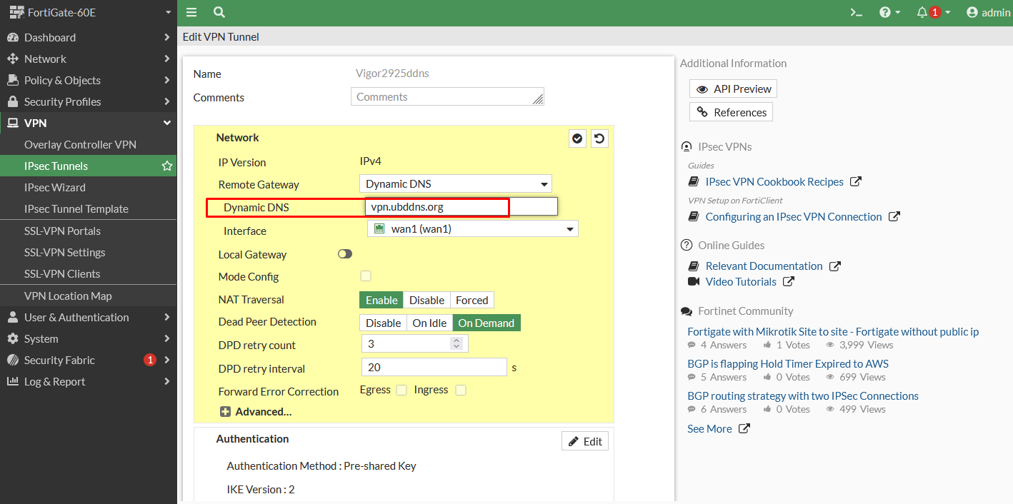 主要是 Fortinet FortiGate 這邊要指定 ddns
