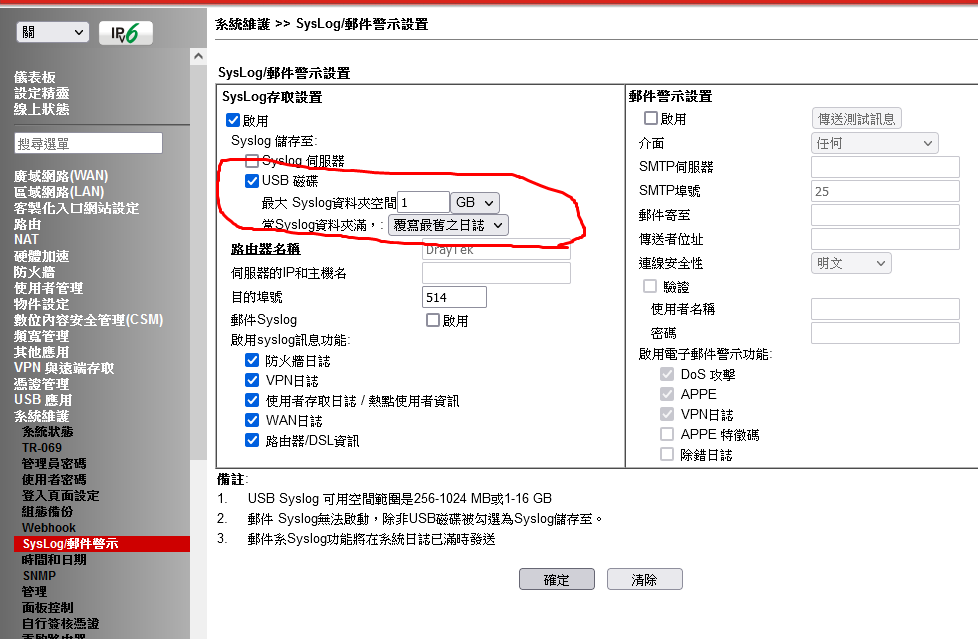Vigor USB syslog 設定方法