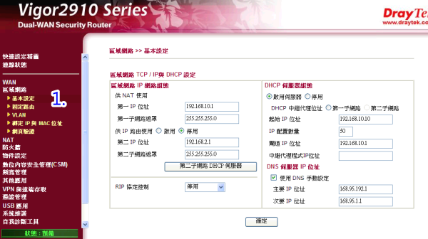 一邊Wan 固定IP:59.125.9.159,內部Lan IP:192.168.10.1