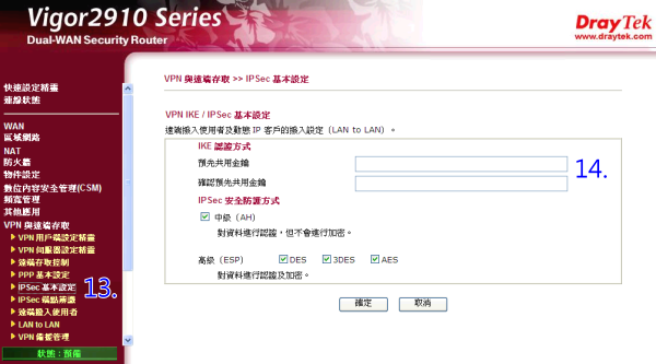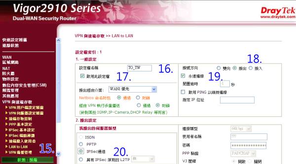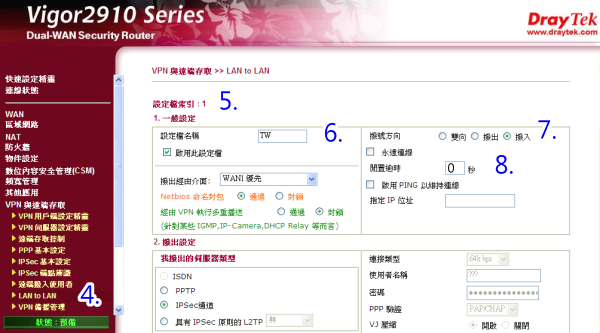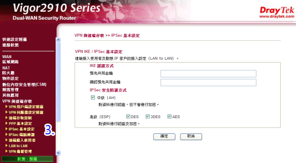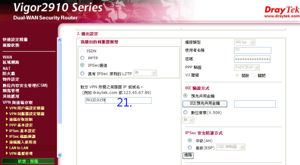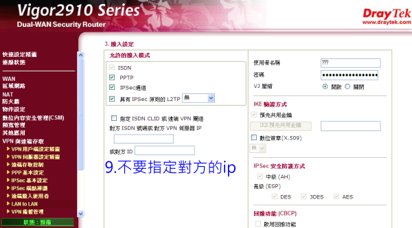 Vigor VPN的設定,如何設定一邊固定IP,一邊是浮動的動態IP建立起IPSec 或是PPTP VPN