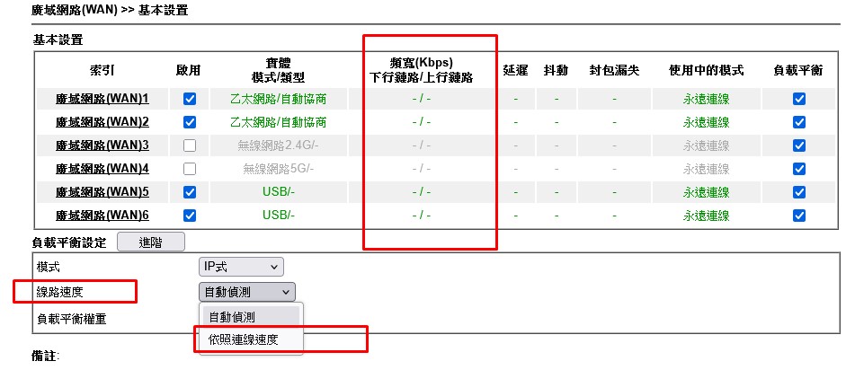 這樣他就會依輸入的上下行速度去計算線路的比重