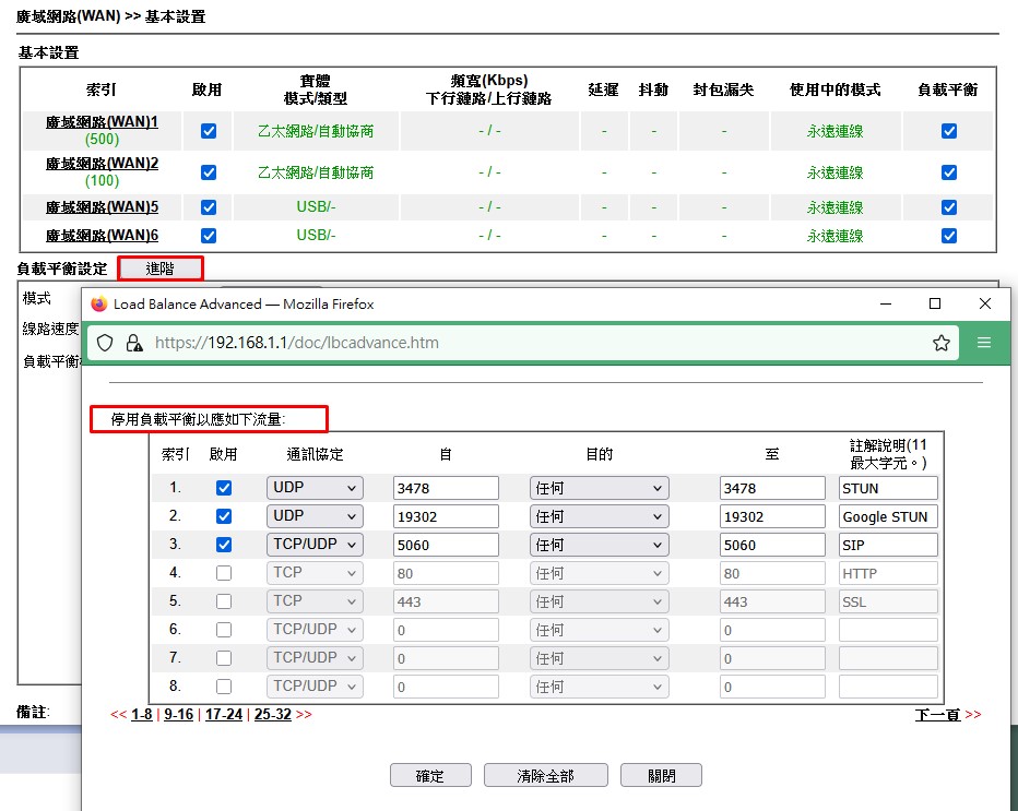延遲、抖動與封包漏失需要在每個WAN設定頁面設定鏈結條件偵測。
