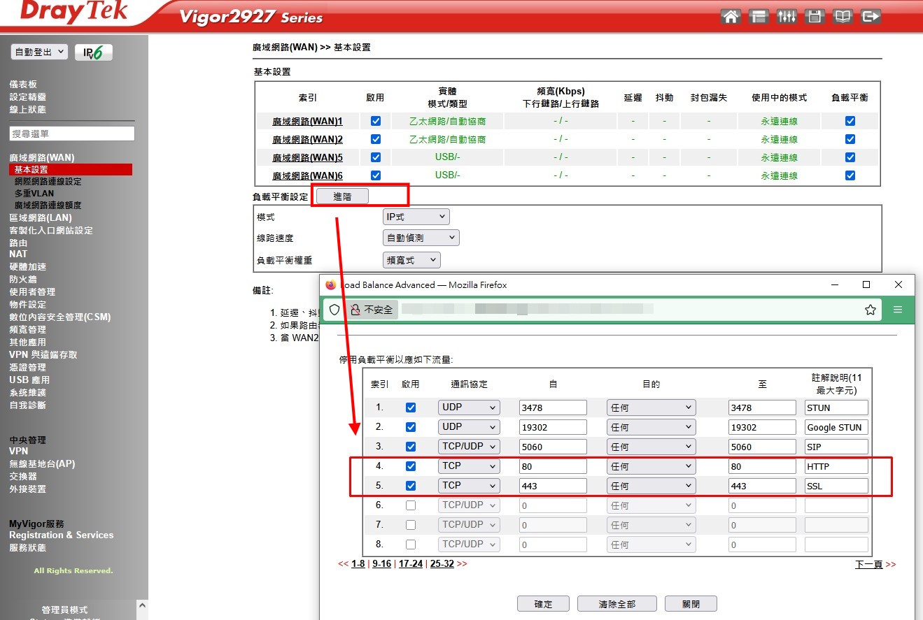 Vigor Router Firewall WAN 廣域網路 負載平衡設定