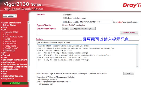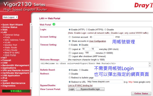 Vigor2130版本v1.5.2 WebPortal功能說明